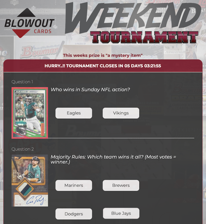 Did you get in on last week's action? Check the leaderboard and contact fish@blowoutcards.com to claim your prize if you're the winner.