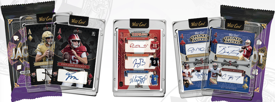 Order: Click hereWhat's buzz-worthy: Wild Card hits the gridiron once again with a release where every card is limited to no more than five copies and there’s a boatload of 1/1 action in every case and plenty to chase. It’s, according to the company, "built around an elegant black, gold and metallic casino-inspired aesthetic, creating one of the sharpest and most premium looks we have ever put on a card."
