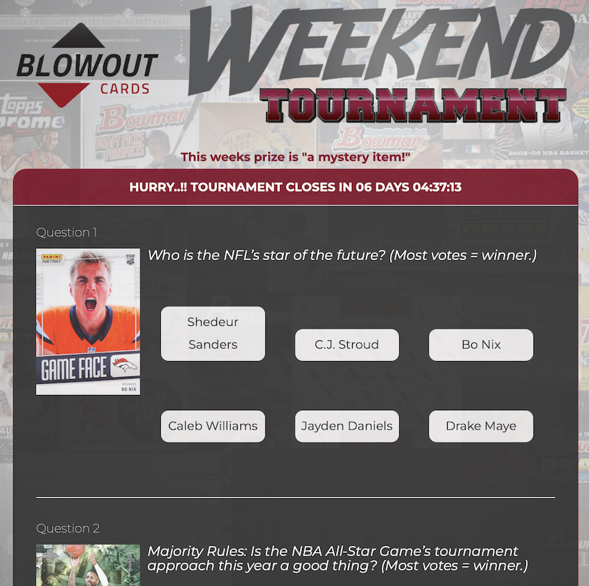 Did you get in on last week's action? Check the leaderboard and contact fish@blowoutcards.com to claim your prize if you're the winner.