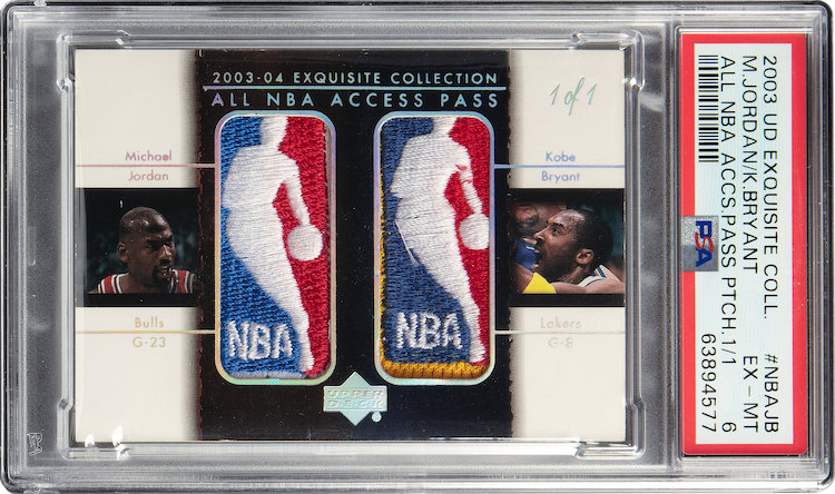 The Item: Michael Jordan & Kobe Bryant 2003 UD Exquisite Collection Dual Logoman All NBA Access Pass Patches (1/1) -- PSA 6