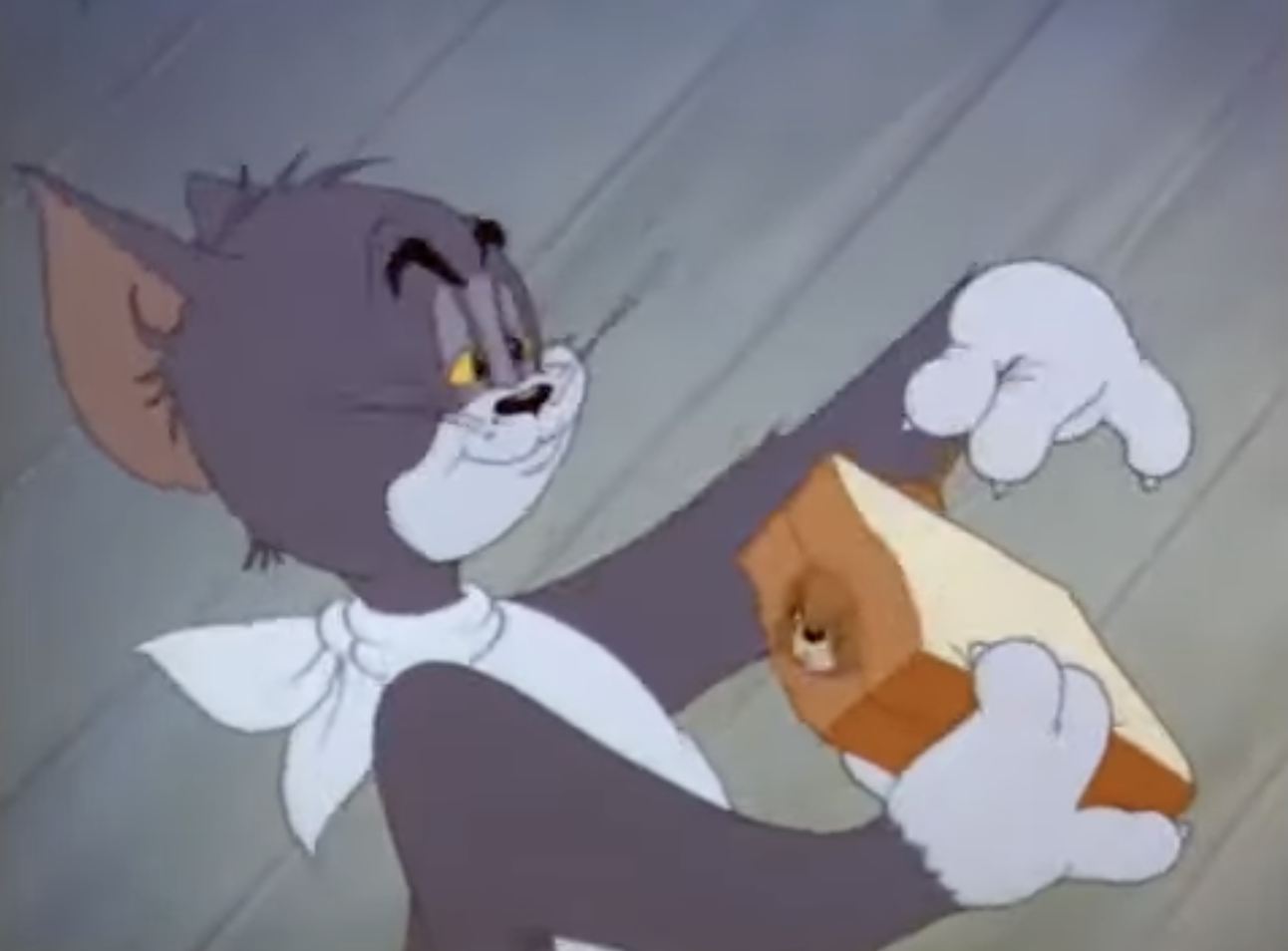Here’s the auction house's take: "Directed by their creators Bill Hanna and Joe Barbera, this Tom & Jerry film debuted on Sept. 22, 1945, following a back-and-forth between Tom and the Eagle over who will get Jerry as a snack. Spotted early on near the 0:47 timestamp when viewed online, Tom turns Jerry around by the tail preferring to chow down on him face-first. Too bad for Tom, though, because the thieving Eagle swipes his mousewich before he can even take a bite! Rendered in graphite with some colored pencil detail to half-figures, Tom and bread-bound Jerry share a frame-filling combined size of 8.75 by 7.25 inches spanning nearly the full 12 field sheet which is numbered 53 in the lower right and bears a faded studio stamp reading 'Prod 129 Sc 4' along the peghole edge. With typical handling and edge wear including faint age-related toning, minor corner creasing, tiny edge tears, and superficial surface wrinkles, overall this soon-to-be thwarted snacking is in Very Good condition.”