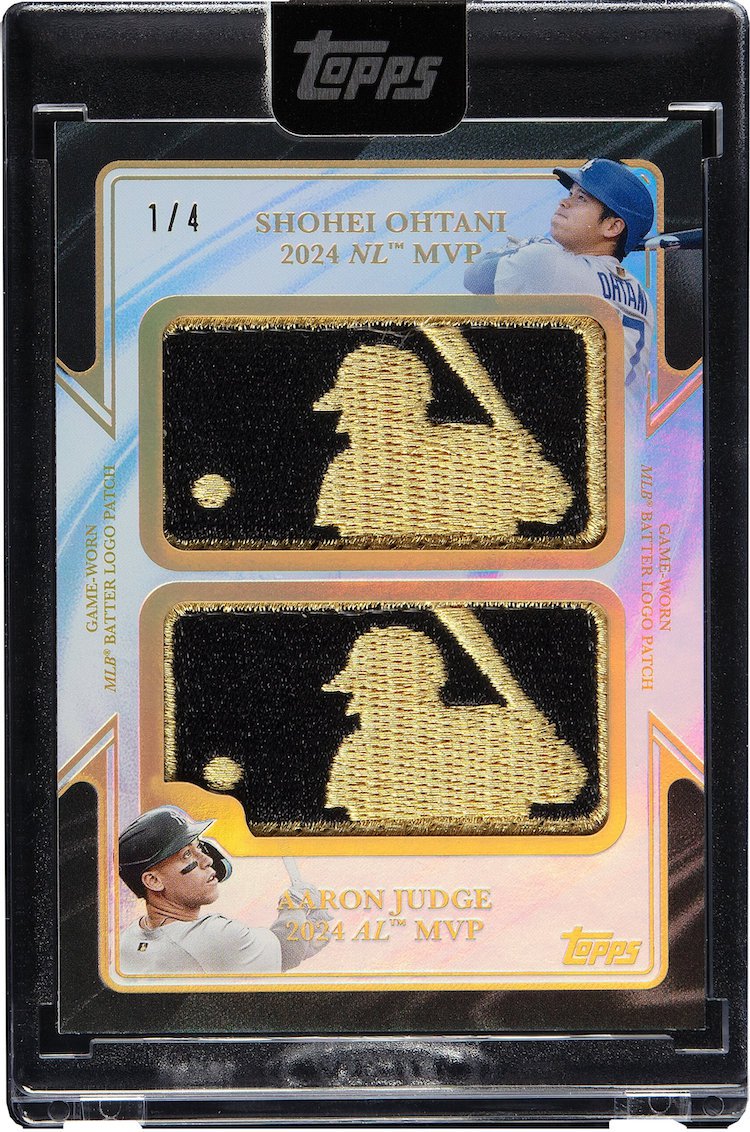Why it’s Buzz-worthy: Earlier this year, Heritage sold No. 2/4 so here we are again. That one sold for $164,700 and since this one is the same here’s some of the same I said last time. ... This monster card came out of a pack in recent months -- well, at least its redemption did -- and it's already on the auction block for a cash-in. What is it? It's a card with the gold-threaded MLB logo patch off of game-used jerseys from the reigning MVPs from each league in 2024 as worn last year -- if you look closely at both images on the card you can see them, too. (Enhanced to make sure they stand out more? Not necessarily ... but they sure do pop on those tiny images.) Cards like these -- signed and unsigned as singles and immensely rare finds -- are some of the biggest pulls in the heavily produced brand with long odds. The back of the card has built-in windows for you to see the MLB Authentication stickers for these patches pulled from their jerseys. Should these be a hold or moved immediately? I bet your answers are all over the place -- but the longer one waits, the more the chances other cards like this might be done over time, giving them more competition if they are all up for grabs at the same time. Ohtani and Judge are two of the game's biggest names of the here and now and figure to be later. How big among the all-timers? We'll find out when they are done ... but they are as safe as it gets right now, too.