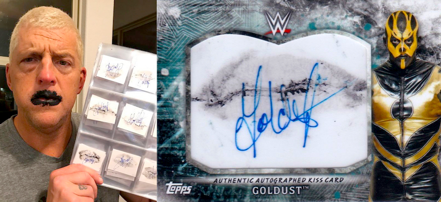 This is one, for whatever reason, I bought a lot of back in the day and whenever I open a lid of a storage box and see a run of these base cards I give it the 1990 Donruss treatment ... I just close the lid and move onto the next box. So, then why is this a pick here? Well, the autographed cards -- all on-card sigs -- are solid finds and there's one genuine WWE oddity that's a super-rare card that was done just once and won't likely be done again. It's a card so rare -- just 36 cards across the basic card and then two parallels -- I haven't seen one pop up since when this one arrived. What is it? It's the Goldust autographed kiss card. Just 25 copies exist for the regular card, 10 for a parallel and then one for a 1/1 edition. Hits are longshot finds here but I can't help but wonder if some of the kiss cards that are found in hangers are sometimes those of this super-memorable and unique veteran star who's working for WWE's competition now. I doubt we'll see him on any WWE cardboard anytime soon, but the son of a Hall of Famer is one himself ... someday. This is easily one of his best cards ... and could be a name-your-price item if made available. (I'm tempted to grab a lot knowing the odds are rough here but the ink in this one is also strong. Another big key? It seems hobby boxes are long, long gone for this release.)