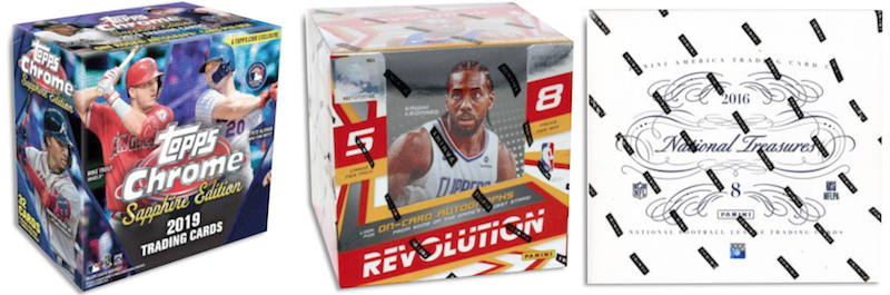 The tourney winner, for example, gets to choose from these three possibilities -- a 10-box lot of 2019 Topps Chrome Sapphire Edition baseball cards, a 16-box case of 2019-20 Panini Revolution NBA or a four-box 2016 Panini National Treasures NFL case. Other finishers get to choose from even larger lists depending on where they land in the top eight. Click here to see a rundown of the extras winners will choose from.
