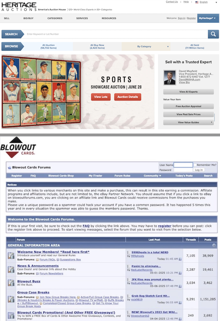 Heritage Auctions will now have an advertising display presence and regularly appearing spotlight items on the Blowout Cards Forums beginning on July 1.