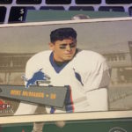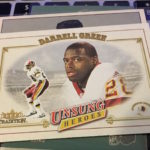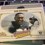 What's Buzz-worthy: Why is this one here? The simple chase of a Pat Tillman Rookie Card and it's a chase that ended up fruitless. It's not technically a short-print as its just one of the cards in the Unsung Heroes subset but it's one of five NFL cards — all from 2001 — in this one, Fleer Tradition Glossy, NFL Showdown, Upper Deck MVP and Upper Deck Rookie F/X sets. What was found here was a boatload of base cards with a familiar throwback look that's reminiscent of 1952 Bowman football. The Rookie Card presence here probably hurts the breaks -- they're one in every 10 packs -- while there are four types of inserts to be found. This box had one of the easier inserts but that's it for thrills between that and an RC of Mike McMahon. There are long odds on memorabilia cards and autographs here (roughly one in 240 packs) and Art of a Champion inserts are just as tough. All in all, this is a simple but compete kind of set but not a lot of flash. This box wasn't even as flashy as that but it was decent for the price (and it's not a super-plentiful box) but the end result, once opened, was ultimately very average.