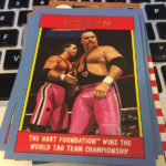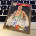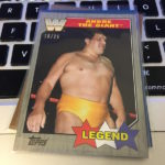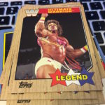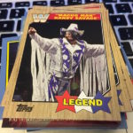 Notables on base cards – The Rock, Brock Lesnar, Charlotte Flair, Goldberg, Mick Foley, Maryse, Trish Stratus, Sasha Banks, Bray Wyatt, Chris Jericho, Becky Lynch, John Cena, “Rowdy” Roddy Piper, “Stone Cold” Steve Austin, Andre The Giant, Bret “Hit Man” Hart, “Macho Man” Randy Savage, Lana, Roman Reigns, Triple H, Undertaker, Dusty Rhodes, Edge, Ric Flair, Shawn Michaels, Sting