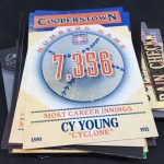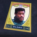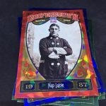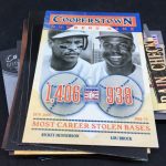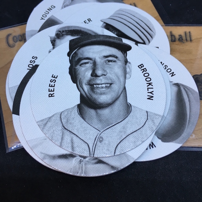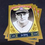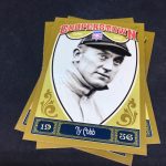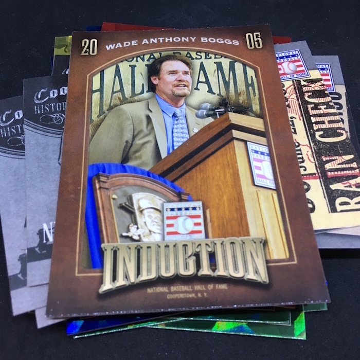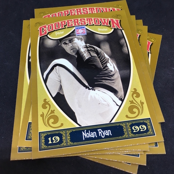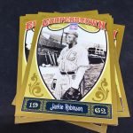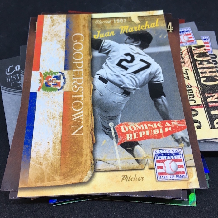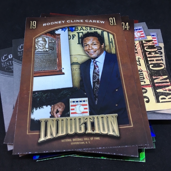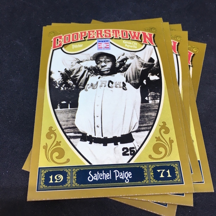Notables on base cards: Jackie Robinson, Satchel Paige, Roy Campanella, Buck Leonard, Frank Robinson, Bob Gibson, Christy Mathewson, Lou Gehrig, Ty Cobb, Home Run Baker, Honus Wagner, Cy Young, Cap Anson, Warren Spahn, Stan Musial, Rogers Hornsby, Jimmie Foxx, Yogi Berra, Tris Speaker, Casey Stengel, Whitey Ford, Willie Stargell, George Brett, Mike Schmidt, Nolan Ryan, Robin Yount, Brooks Robinson and plenty more (all base cards are Hall of Famers)