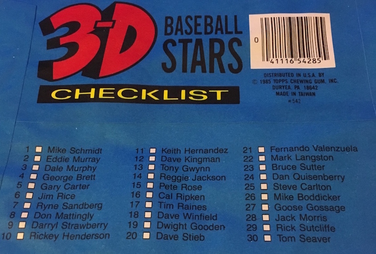 Buzz Break: 1985 Topps 3-D Baseball Stars pack