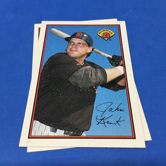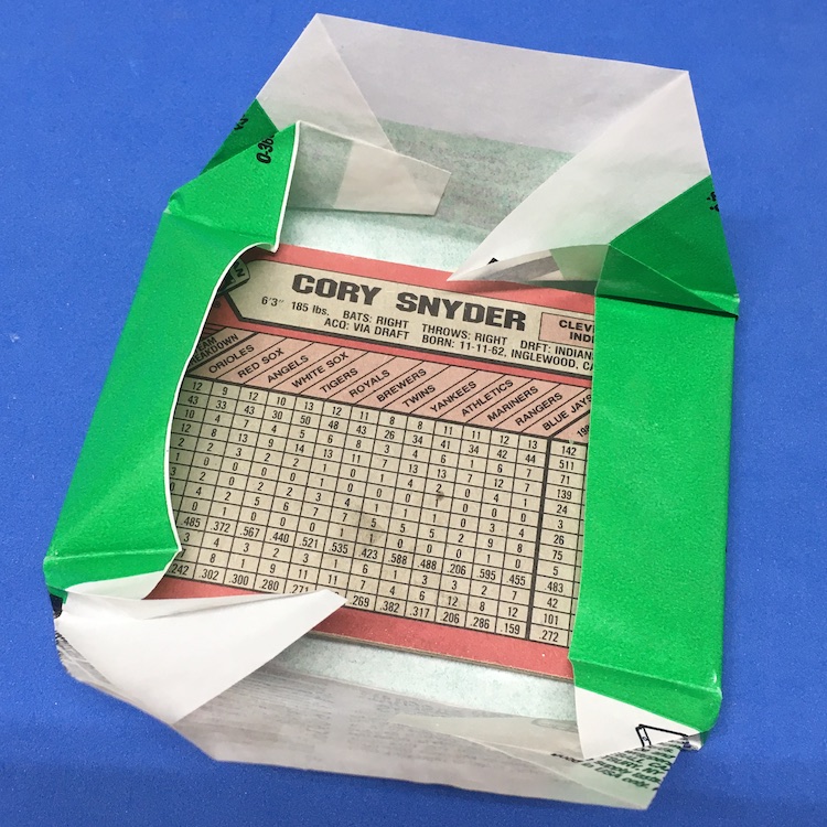 What's Buzz-worthy: The "comeback" here was the revival of the Bowman name for baseball cards for the first time since the 1950s when Bowman was Topps' biggest rival card company and was perhaps winning the game with some notables locked into deals where they were only found in Bowman's packs. Topps bought them out and they went away before this return as a brand. The front design here? An ode of sorts to 1953 Bowman Color with some color/striping on the border, a facsimile auto and then a new logo. The backs? Purely data with the exception of newly signed names whose card backs were blank save for a pro debut descriptor for guys who had no stats. (A precursor for the 1992 flood of new names that essentially started the Bowman approach of today with many prospects in MLB unis years before their actual debuts ... if they debuted at all.) The biggest draw here? A Rookie Card of Ken Griffey Jr. and then a secondary card showing him and his dad together. There are, of course, other 1989 rookies in here -- Jim Abbott, Robin Ventura, John Smoltz, Gary Sheffield, Jerome Walton, etc. -- some with really nice portraits (Abbott, for example) and some with throwback bad airbrushing jobs (Ventura) to give it that throwback flair ... though bad airbrushing was still a thing in some 1989 sets. The highlight in these two snow-filled packs? It might be the Mickey Mantle card ... and it's not even a card but it does show a 1953 card for those who want to compare these cards to the original they are emulating. This one is all about Griffey if you ask me ... but elite-graded stuff here could be pricier than one might think for a lot of names as the printing and cutting here is definitely not that clean. I found these cheap so it wasn't a worry but these two packs are a reminder that old packs can be a whole lot more of a miss than a hit.