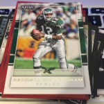 Notables on base cards: Matt Ryan, Bo Jackson, Odell Beckham Jr., Marcus Allen, Barry Sanders, Steve Young, Adrian Peterson, Morten Andersen, Dak Prescott, Marshall Faulk, Warren Moon, Jim Brown, Dan Marino, Gale Sayers, Fran Tarkenton, Deion Sanders, Tony Romo, Randall Cunningham, Andrew Luck
