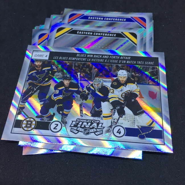What's Buzz-worthy: This one is a huge release as Topps returns to the ice albeit in sticker form with a 630-sticker collection that has a 77-page album that itself comes with 10 stickers. You get a foil sticker in every pack -- and those are simple but impressive with sturdy stock that makes me think you could grade these and do well (yes, I'm that crazy) if you're not peeling and sticking. Inside the album, every team gets a spread with its logo, a highlight and three stars who get the foil treatment. After that, there's a spread for rookie debuts, All-Stars, vintage logos, the Stanley Cup Playoffs, the champion St. Louis Blues on some puzzle stickers and award-winners. The book also ends with a page of spots for you to build your own All-Star squad where you can showcase nine duplicates. There were dupes here -- not heavily but definitely in there -- and you'll need more than one box to build a huge set -- but this feels like a pretty solid but simple release for NHL fans. A sampling of everything can be seen in the gallery below.