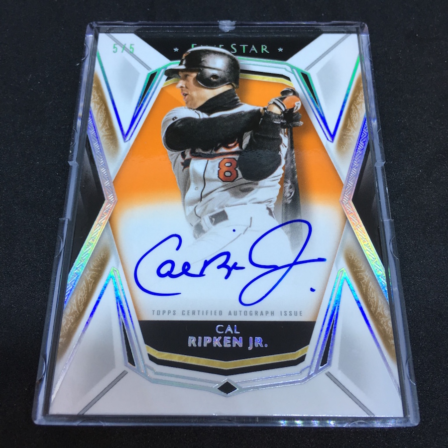 What's Buzz-worthy: Five Star's accessibility now as a high-end brand keys upon the volume -- since you only get two autos per box, it's a cheaper box. That can be hit and miss when you have young guys on the checklist but this box was clearly a hit. The Ripken auto you see here is one in every 47 boxes -- or six cases. That's not even close to the flashiest kind of card found in these boxes -- it's just a simple but rare parallel -- but it's still a solid A box. There are big-name rookies, MLB logoman patch autos, batting glove autos and more to land here. This is a high-end brand so your chance at notables is definitely there though there will be Muncy cards out there to balance out the Ripkens -- and he's not bad, he's just no Ripken. High-end boxes can be hit and miss -- and I'd bet some cases don't wow rippers because of the lofty expectations that collectors will have for the brand. But they are in there -- not in every case, but in there. If the singles you want are lower than box price, I'd definitely say pick off those singles but there are a lot of solid cards in this one that justify ripping into a pack -- especially with all of the key newcomers from last year and this year found here.