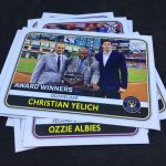 Notables on base cards – Mike Trout, Pete Alonso, Keston Hiura, Kris Bryant, Vladimir Guerrero Jr., Ozzie Albies, Christian Yelich, Hank Aaron, Carlos Correa, Gleyber Torres, Aaron Judge, Albert Pujols, Cody Bellinger, Juan Soto, Shohei Ohtani, Buster Posey