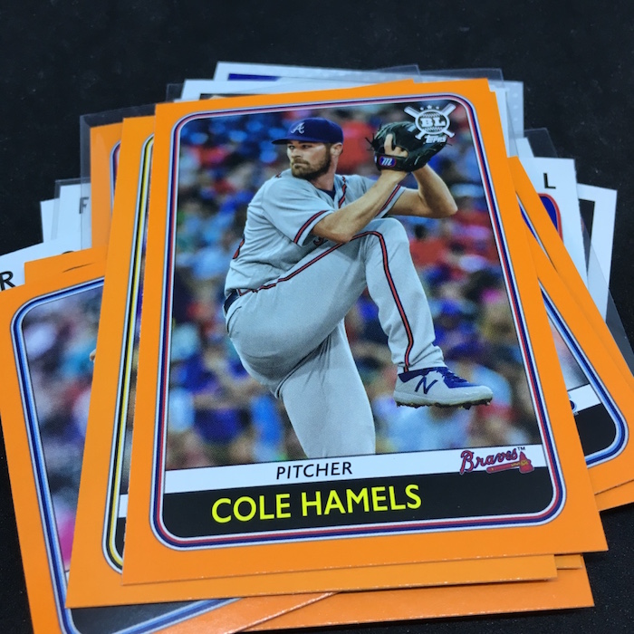 Orange parallel (10) – Mike Trout, Cody Bellinger, NL HR leaders, Randal Grichuk, Charlie Horton, Joe Musgrove, Cole Hamels, Jon Lester, Chris Paddack, Josh Hader