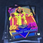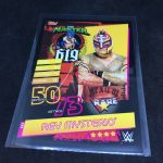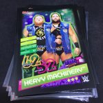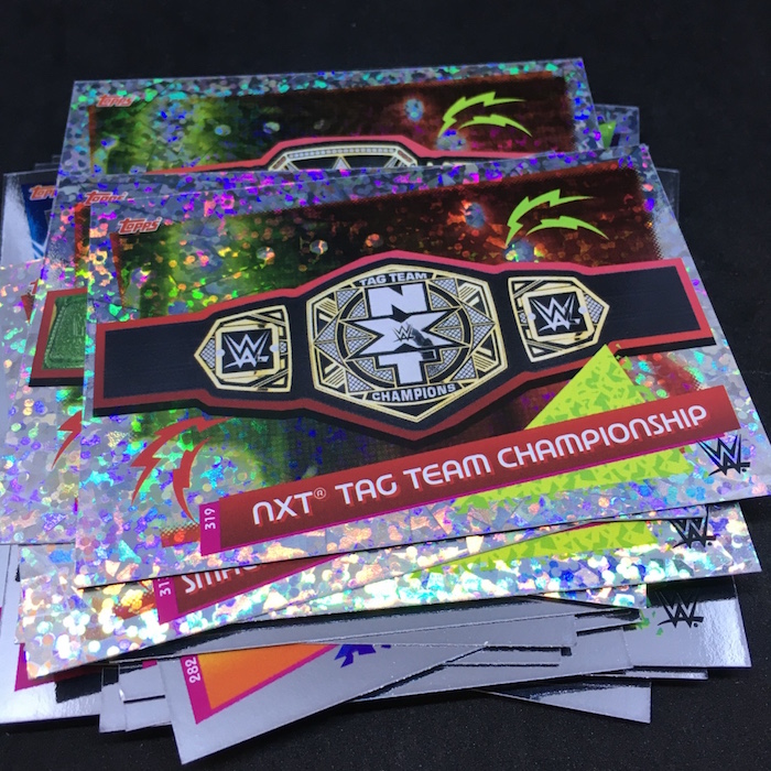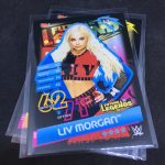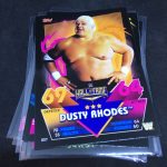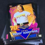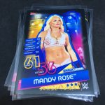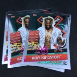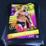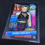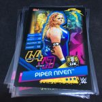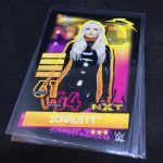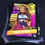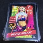 Notables on base cards: Rhea Ripley, Scarlett, Liv Morgan, Mandy Rose, Peyton Royce, Piper Niven, Dusty Rhodes, Ricky Steamboat, Alexa Bliss, Nikki Cross, Dakota Kai, Ricochet, Roman Reigns, Shinsuke Nakamura, Keith Lee, Walter, A.J. Styles, The Street Profits, Cesaro, Otis, Heavy Machinery, Karrion Kross, Aleister Black, Roddy Piper, Becky Lynch, The New Day, Ember Moon, Drew McIntyre, Ted DiBiase, trash can (!), Kevin Nash, Xia Li, Io Shirai
