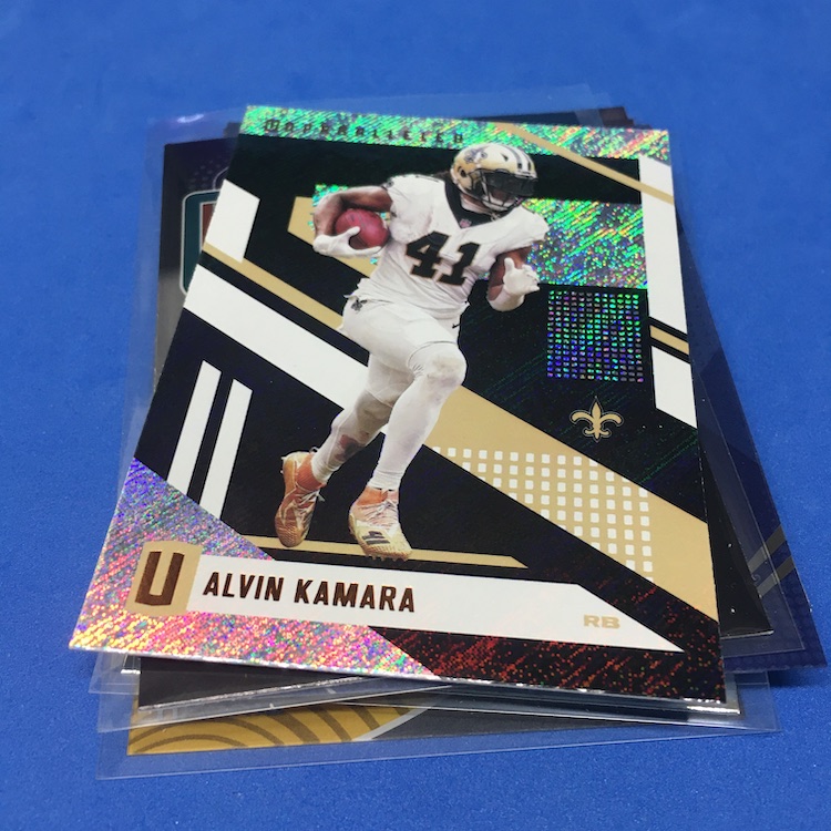 What's Buzz-worthy: This brand was a favorite of mine across a few sports in the past and this one shows how, despite all those aging rookies, there can still be fireworks in older NFL boxes big and small. This set is loaded with guys I'd want -- there are a bunch of Alabama Crimson Tide guys in the release and several popped up here -- and even this small pack is all about variety, which I think is a big plus. Landing a super rare (for here) card of a top name in NFL history? It's an A-plus box. The Brady, a parallel of a card type only found in this format that may or may not have been opened as heavily as others, likely pays for a big chunk of the box lot that I landed a few of these from -- if not everything. This is a card I'll slab for my stash -- it's clean -- and it's not alone among notable cards found in a small grouping of these cereal boxes. (You'll see another at some point soon.) ... I like this one as you don't have to break the bank to chase some rookies -- and this has them -- and I dig the typical variety here a lot. The acetate cards and Optic/Prizm cards here make it a solid mix where I'll definitely do more of these if I can keep finding them in a reasonable price.