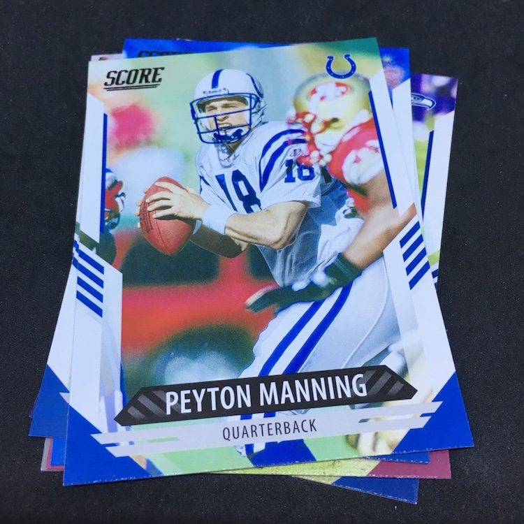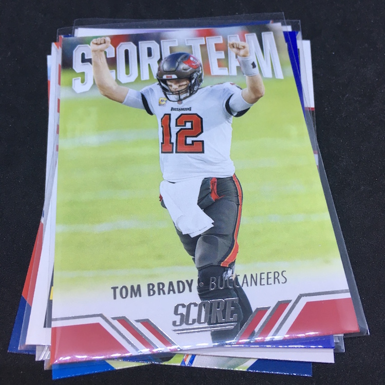 What's Buzz-worthy: Blasters were not among my limit-two realities this past week at the retail aisle but this one pack delivered plenty of energy as well as star power from the past and present -- and it was all strong enough to make me want more. On the mocks here, I thought that the names were too big but in person it all feels pretty comfortable -- a high-energy feel for basic Score NFL without an overwhelming border that has been a little too common in recent years. This one carries a comfortable familiar-feeling but (I think) new design that does have vibes from some past Score releases. The insert and RC volume here is pretty good and those are reasons to rip. The card backs here also are relatively complete and the overall feel of the insert designs jives with pretty much everything -- at least in this pack. (Some past releases have had stuff that felt a little cartoonish.) The Brady is perhaps one of the better finds here though there isn't really a "big" card here ... but for the basic price the mix was pretty good and the volume and variety makes this a fun break even if not the flashiest pack. Also consider that if you get six RCs per pack and maybe more with parallels, that should mean those key names arrive relatively often. I'll rip more if it presents itself and have more thoughts on this one then.