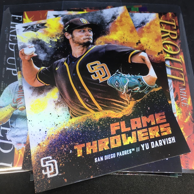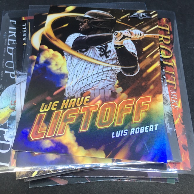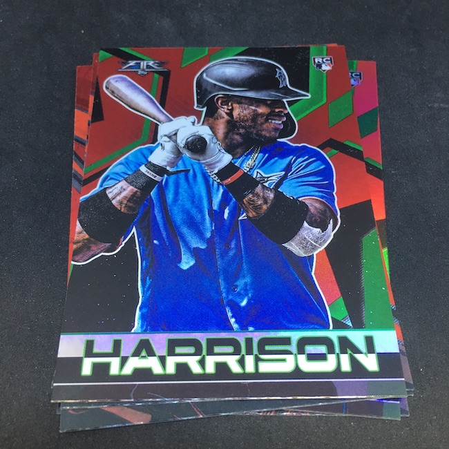What's Buzz-worthy: I revisited this one after an A+ box earlier this year and this one, well, was a back more to reality with average results on the ink and parallels but some solid finds elsewhere to keep it from being a C. (I really like the Trout and Bichette inserts here from a visual perspective ... not all that worried about value with this brand as it's definitely not as popular as others out there. ... The checklist for this one is heavy on RCs -- but not solely RCs -- but the autograph lineup is pretty close to all newbs -- and that can mean good results. There also are some strong rarer pulls here with multi-player autos but at longer odds. The basic design here is colorful and busy -- that's the brand -- but it may be a little simpler than some other releases for this one in the past. I'm not a big fan of it but it's efficient and the overall inclusions don't feel limited in scope so the release still gets an A- from me. This is a "hobby box" as noted on the box but Fire is a Target-only release with this and blasters. If you can find this format, the autos make it the one to rip with the safest shot at a safe or big return.
