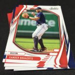 What's Buzz-worthy: This is a brand I have generally liked but not ripped a lot of in recent years despite it packing a good amount of variety and inserts into blasters quite well. This year is no different though with more cards and one more pack per box than last year the volume of inserts/parallels actually went down. My hit here was the right team and a rookie but perhaps the wrong rookie ... but I appreciate there being a hit per box here. The hobby boxes are where the big stuff resides and this one has always been the home for big-time memorabilia cards and more. I don't think I've opened any hobby boxes of this one this the Donruss years -- yep, it's been some time -- but it's one I like generally speaking. Blasters here are the home of Lava parallels and Green parallels and both can be found for base or inserts here. The base design is in the wheelhouse for the brand but feels perhaps cleaner than usual while this year's crop of insert designs doesn't feel as tight as last year, which I thought was pretty strong. All in all, this one feels right.