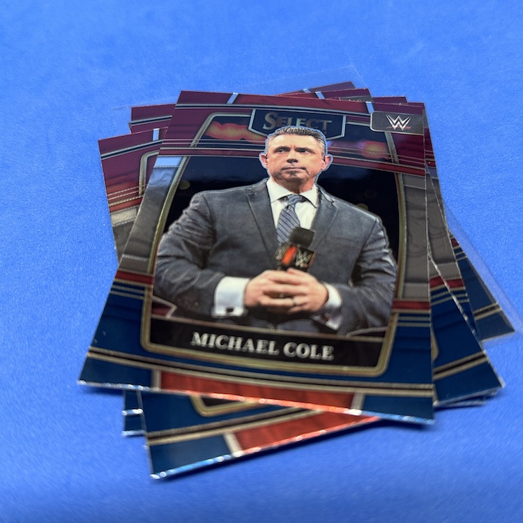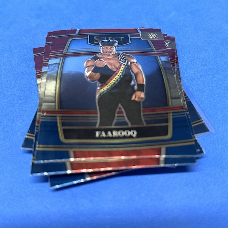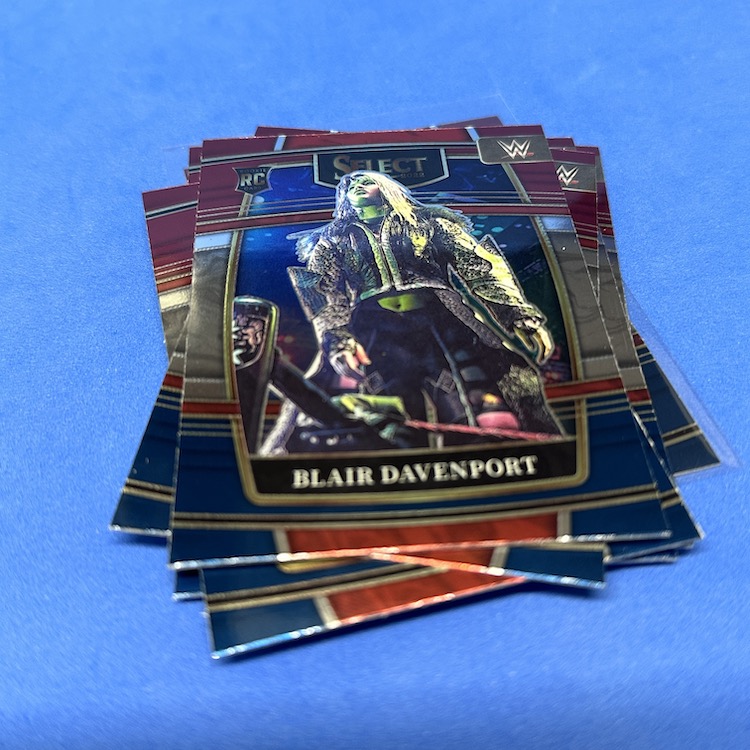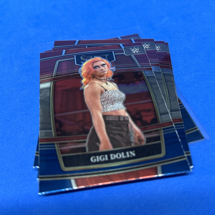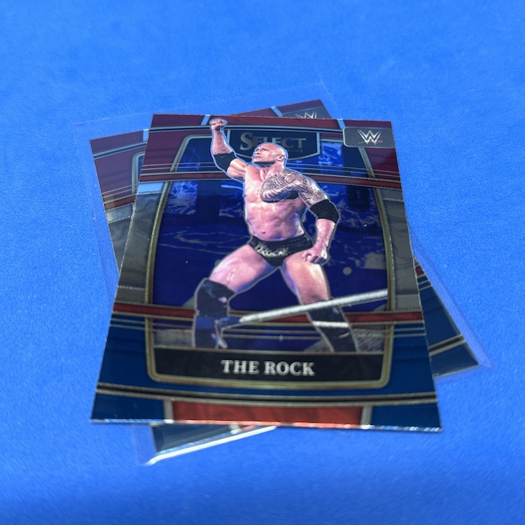 Red & Blue Concourse (base parallels) (17) – Rhea Ripley, The Rock, Alexa Bliss, Solo Sikoa, Charlotte Flair, Jimmy Uso, Gigi Dolin, Michael Cole, Blair Davenport, Joe Gacy, Goldberg, Undertaker, Faarooq, Rikishi, Ted DiBiase, Mansoor, Kushida