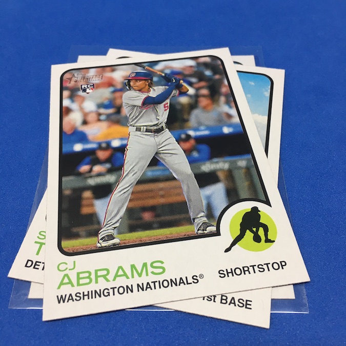What's Buzz-worthy: Sometimes a simple error can pay off and in this case a bargain-bin blaster was a little warmer than normal as it coughed up more than the typical volume on the insert front -- about double the norm -- and a pair of Chromes that are one in 54 packs apiece on their own gets this one the win. Most Chromes can be rough here -- either with the player or the centering -- but that Torkelson is remarkably clean. So clean, don't be surprised if you see it slabbed here at some point ... just because. Among the standard cards, I whiffed on all of the notable newcomers save for Julio Rodriguez but that helped make this over-deliverer better. ... As I've said before, this one is a fun rip for 1970s Heritage -- can't say that every year -- and HHN is one that has such a loaded set that it's perhaps harder to get a truly bad box on the RC front. ... If I liked the 1973 design more, this brand might have landed an A+ grade overall as this is the kind of release we need to see more of -- a lot to chase -- but without a price that forces one to rip and flip since it's so expensive. It's a better experience with hobby boxes for their price and that sale price is good right now -- and there's a guaranteed hit and more along with a near-set in every box. I say rip those until they rise or dry up and then snack on these blasters or the megas later as long as they are reasonably priced.