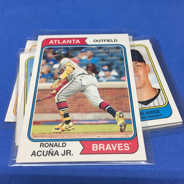 What's Buzz-worthy: Eight packs ... seven Aaron Judge cards. That's an oddity for sure -- and nothing is a variation or parallel, either. Atop that, the run of stars here are strong with Acuña, Ohtani Stride and more and then a couple of the better rookies but not the top ones. The inserts were a little lean -- they often are with Heritage blasters -- but there's Judge again. This is pretty close to a perfect blaster -- had it had a hit or something rarer atop all these stars it'd be a simple A+ box. ... There needs to be more in Heritage boxes through the rest of the 1970s years if you ask me (save for maybe next year) to get things a little more interesting. Why? If things are too tough there's no point in opening or collecting them and the basic stuff won't gain value, either, if boxes remain findable or if the overall volume is so high. ... Hit hobby boxes for a guaranteed hit in every box -- and there are a few autos in every case -- and that's how I'll eventually go this year. I've easily done more of this one than any other release this year so far on the retail front.