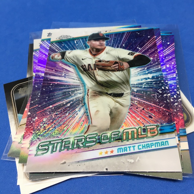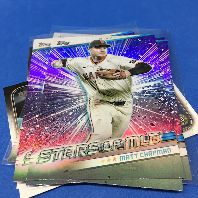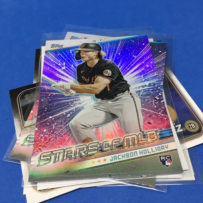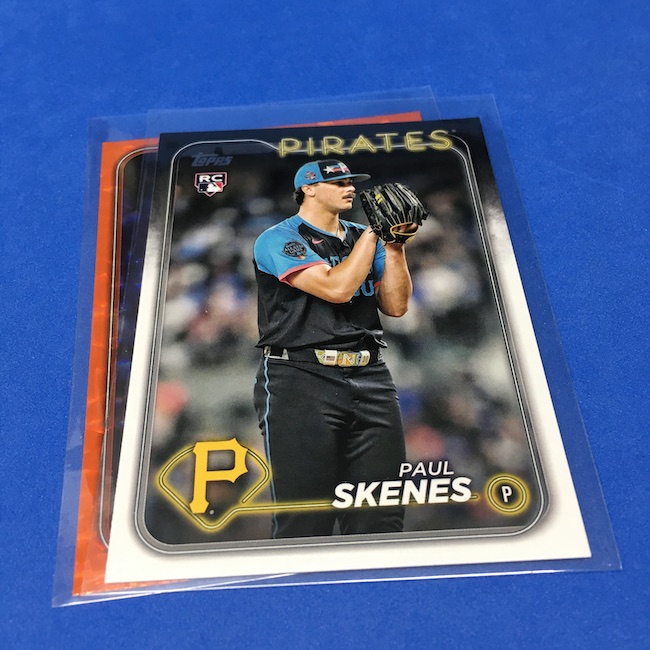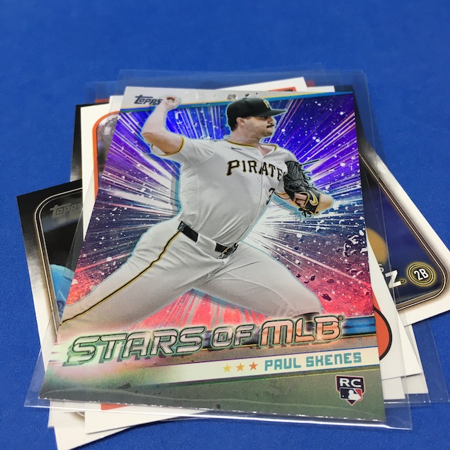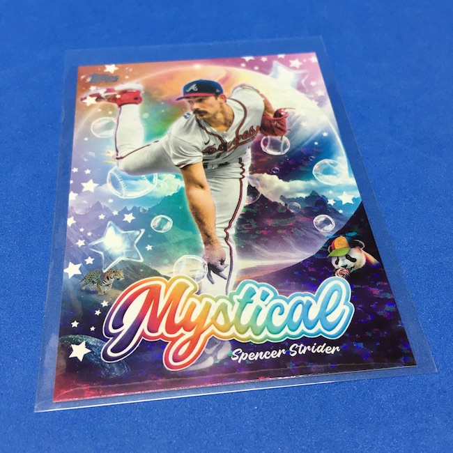 What's Buzz-worthy: I didn't pre-order or jump right in on this one as I let the shelf-clearing rip-flip crew do their thing here but waiting on this blaster was rewarded with a slightly better than the norm box as the Orange here is one in 159 packs -- though I wonder if it really should be -- and then I landed a couple of Paul Skene appearances as well as hellos from Jackson Merrill and Jackson Holliday. But the card that got me to stop and look again after seeing it in-hand vs. the oddity that it is via the digital previews? That Mystical card. "What the?" was my reaction at first on-screen and here, well, it's a touch of the same but enhanced by sparkly foil, a panda and a big cat. Why? I'm not sure I care to be honest ... it's definitely a mystical mystery to me. (I'll leave it up to you -- another mystery whether I think this is a good thing or a bad thing ... it might still be a mystery to me, anyway.) The parallels for parallels sake are fine -- this stuff needs all that and more -- but I also think random striping might show how there should be obvious differences where people, at a starting point, can figure out what they are holding and not having to refer to an odds list for a guess. The base card star power was light here -- it typically is for later-year sets in recent years -- but the rookie volume was basically doubled vs. Series 2. That's a plus most of the time but my basic cards were light on the key names there ... but the rookies in the inserts made up for that. A couple of the inserts I found here aren't in every blaster and, along with that Orange, that gets this one to a higher grade, though this box absolutely can be topped. Will I open more? Maybe. The bigger formats seem to be delivering well at times for sure ... but there's also a lot of postseason MLB arrivals to compete with this. Plenty is made (based on those odds) and plenty are ripping but unless I get a madness for Mysticals I'm not sure I'm even going to do a big box. We'll see. Generally, I was left with a better impression after ripping for this one than Series 2, though my previous rip actually was stronger. I've seen better, I've seen worse ... but there's a lot to find here if you're chasing some of the newcomer names.