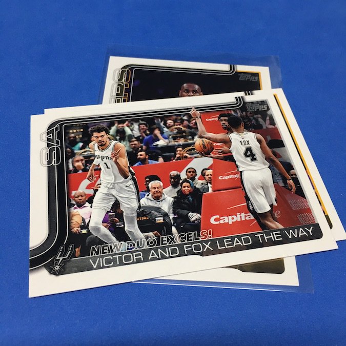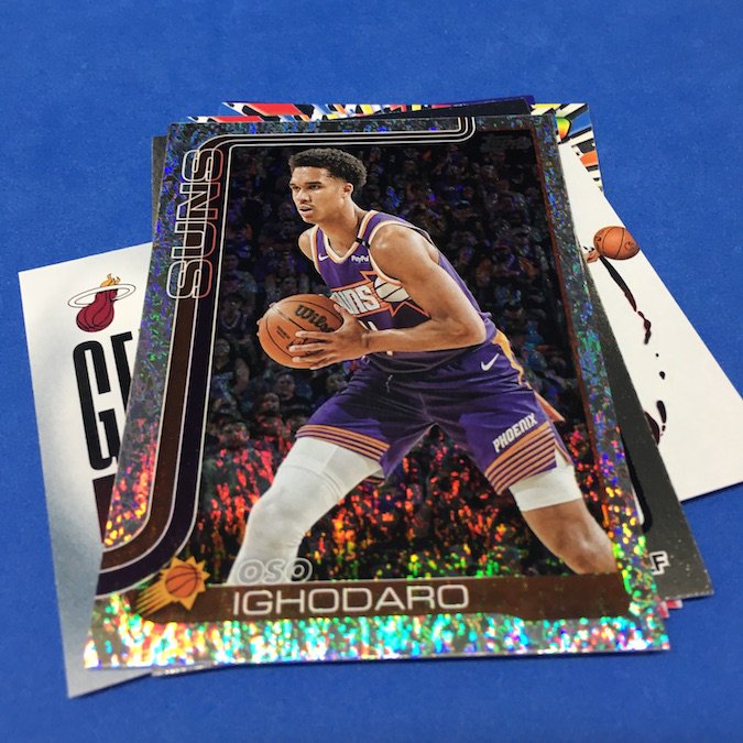 What's Buzz-worthy: After my monster find in my first one of these, this one only delivered another good card for a good rookie only found here, the Diamante of Knueppel who might just be the leading favorite over his college teammate (the guy on the box) for Rookie of the Year honors at the moment. (It's a long season, so we'll see.) The rest of the pack had strong points, too, with a Wemby cameo, a pair of LeBrons, the top rookie on opening night and the typical volume of inserts here with a few more RCs than last time. All in all, another hanger that was a (light) banger. ... As I noted last time, these packs are a world of difference from retail jumbos in that they deliver more of everything and there are exclusives that arrive here every time with potential for more. Just like in MLB -- and I ripped a lot of hangers there this year -- these are the home to the new and unusual Diamante parallels. They are a highlight for sure -- and they were for this pack, too -- but over time with a lot made even these might not hold up like one would expect. In the here and now, though, that's my top card here.