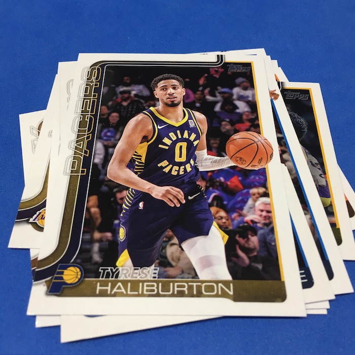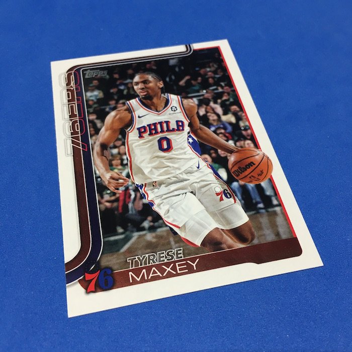 Notables on base cards – Tyrese Maxey, Jalen Brunson, Lebron James, James Harden, Kevin Durant, Paolo Banchero, Tyrese Haliburton, Trae Young, Anthony Davis, LaMelo Ball, Brandon Miller, C.J. McCollum, Jordan Poole, R.J. Barrett, Larry Bird, John Stockton, Rick Barry, Spud Webb