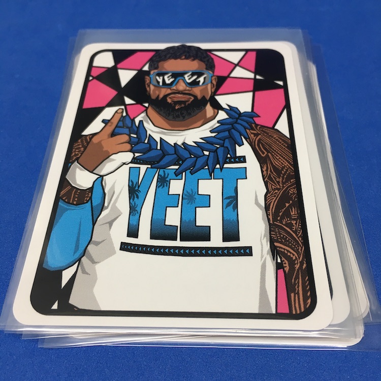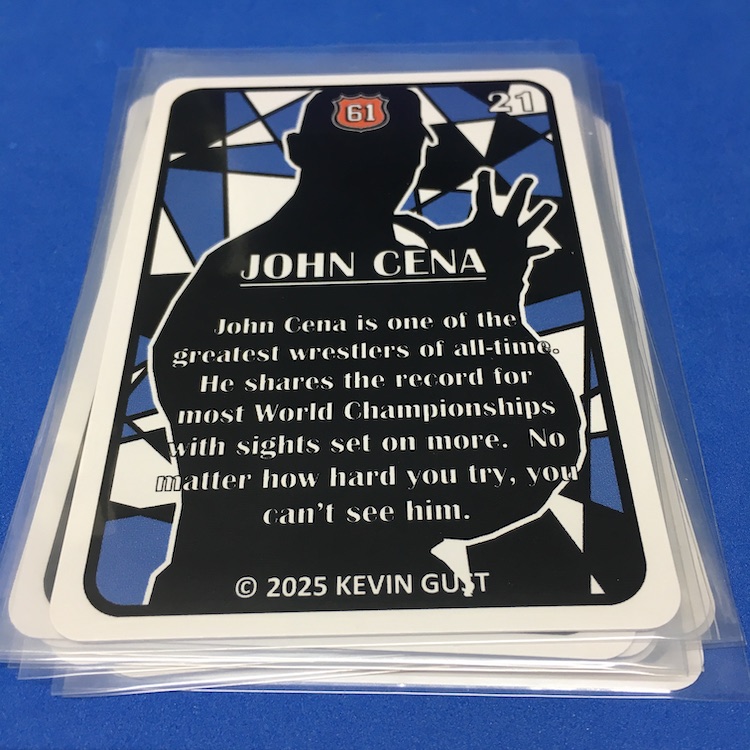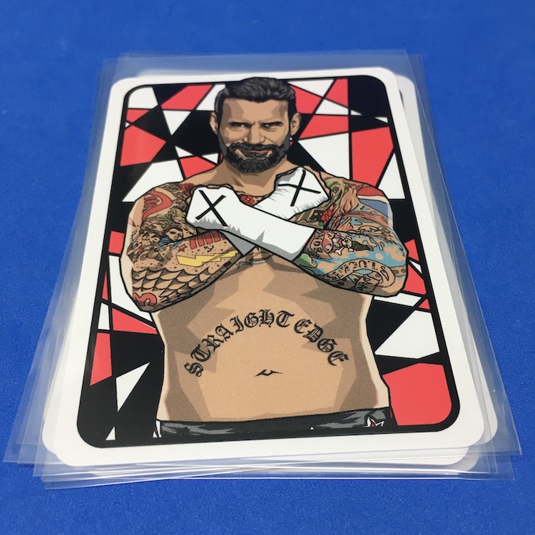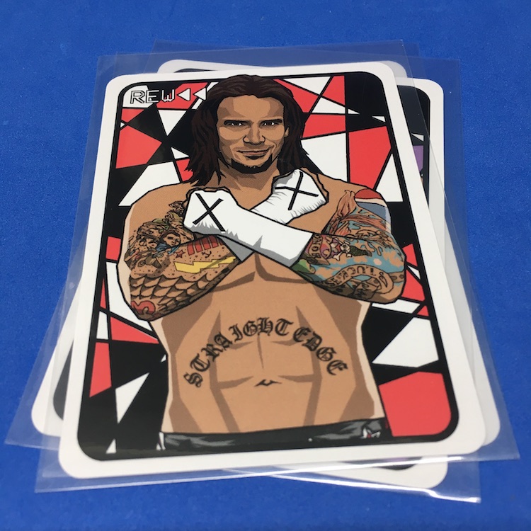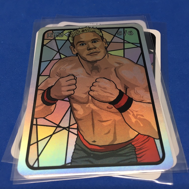 What's Buzz-worthy: This is more of an update for a previous series but since these are well-crafted and there's still plenty of creative art-based new stuff here I bit off a trio of sets -- and here's today's opener for this one as a Buzz Break. ... What are these? They're a pair of artist-created indy wrestling card sets that spotlight just six notable stars today with looks back at their earlier personas for three veterans and then a throwback design for the three newbies (one there is technically a veteran but slightly newish as a solo act). The main set is six cards and then every other set includes either three Rewind or three Wrestling Stars cards. Only 90 sets were made and that makes the two companion sets 45 apiece. Atop that there's a good amount of parallel action here with printed serial-numbers that help ensure the artist's market when it comes to copycat cards. (These are well-crafted so that would be tougher to do vs. some indy sets out there.) ... The bonuses depend on when and how many sets you grabbed, but with three I was assured I'd land both companion sets and then the parallels would also drop with precision (no dupes) across the board. Like the last set, these illustrations showcased a Japanese menko design and then the Stars cards are a nod to 1951 Topps baseball game cards -- all are are crisply done and the printing and cutting is immaculate, too. The newer names here are the draw for me as a collector -- I don't need the Cena, Punk and Uso cards that I do already own -- but these are nice with the Rewind cards Just like last time. The parallels for me to bite for sure for key names I like. All in all, I still like the feel of these and I'll be a regular buyer while they're done. Why? They're affordable and crisply done ($20 per set) and the continuity of them helps make it all a little more collectable. They're a win and something fun to add to the stash without breaking the bank.