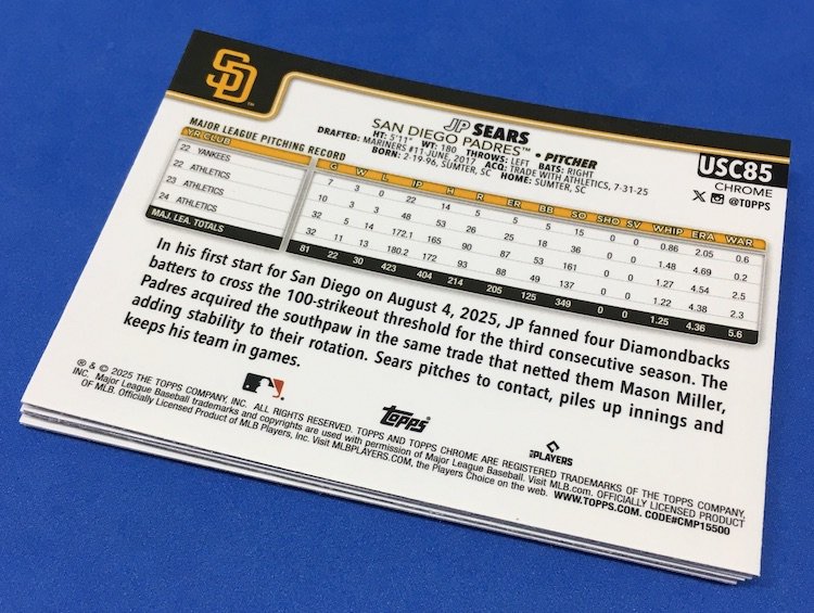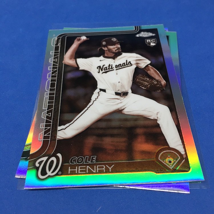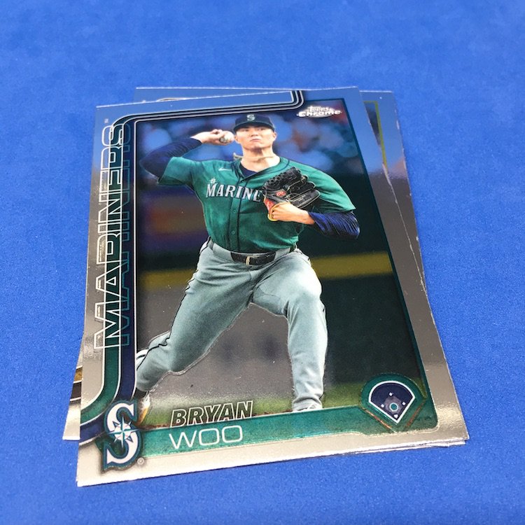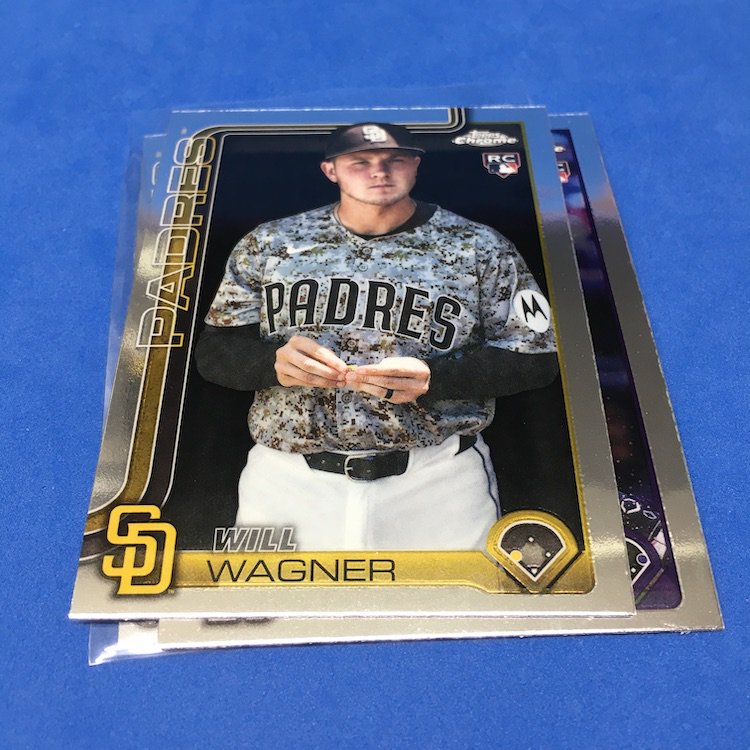 What's Buzz-worthy: A trip out in the retail wild led to spotting five of these and a sea of new Chrome NBA boxes, too, but I opted for just this single box as its $39.99 price tag wasn't as alluring as it might have been in the past. Why? Well, sure, those Pro Debut patch cards are the legendary potential finds in this release with them starting at one in 922 Breaker's Delight boxes. In this format? One in 90,398 packs -- so that's one in 12,914 boxes -- so, yeah, not good enough to take 'em all. (In the past? Maybe.) What I found here was a good glance at first -- first card in first pack the reigning National League Rookie of the Year -- but the centering was brutal on all base cards between the left-right on fronts and top-bottom on the backs. Atop that, edges were funky, too, and again I found surface issues here and there and some stickiness to surfaces that may or may not worsen over time. (Chrome WWE was sticky in some cases immediately after sleeving, so we'll see. These are not that extreme.) The biggest highlight here beyond the basic Baldwin RC was the one in 100-plus pack Aqua Raywave, so that saved this box from being an average box or worse with all the centering flaws. The inserts didn't have that issue and I did land a couple other cards not found in every box ... but there wasn't a ton more here to amp things up otherwise beyond the Wilson insert. Would I do more here? Perhaps, but I'm also realistic about those odds and what I could have found for $40 for sure thing singles if anything catches my attention here or elsewhere. This format is perhaps best consumed by the case for an equal shot at all that it includes -- and it can include a lot.