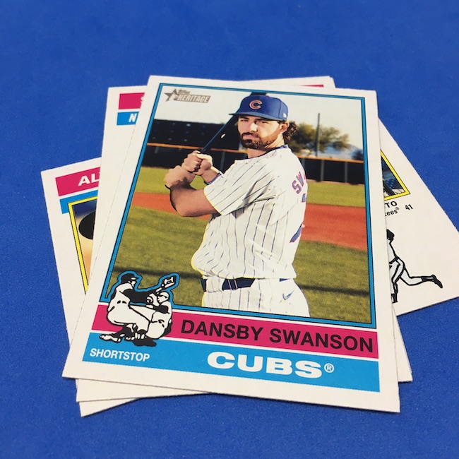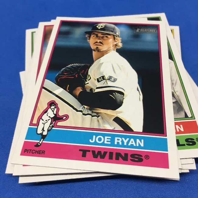 What's Buzz-worthy: The Heritage 25 card is one in nine packs here but the rest of this one was pretty standard or even rough in some spots, giving this one an average feel in my book. Simple as that. It's not as rough as some past years -- at least there are parallels to add to the mix -- but this one didn't deliver anything big. ... This re-visitation of the 1976 Topps set -- a crisper and cleaner version of a set that, to me, evokes 1970s Ford Motor Company stylings ... an industrial, but crisp feel a la an old LTD car or something but not quite as clean and sporty as a Mustang. Gone are the weird colors and that garish font of 1975 with those traded in for some quirky cartoons on the fronts that are perhaps the only thing that's not clean and relatively timeless here -- but they do immediately draw it back to the original. Gone are most of the issues that made last year's Heritage rough -- the backs are readable here, the collation seemed clean and no overwhelming issues from printing and packaging other than maybe some rough edges ... but even that wasn't as tough as the last few years. ... I'll still rip more of this one this year than I did last year that's for sure.