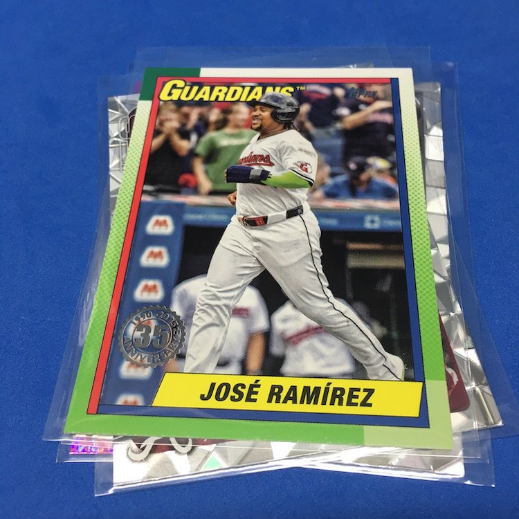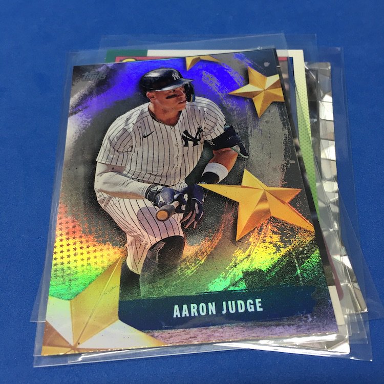 What's Buzz-worthy: This third pack of mine is remarkably similar to the first for the base cards -- not a good sign and it reinforces some forum chatter about collation being streaky or downright bad in some instances on larger breaks -- but overall this pack was still above average with the Judge and Holliday appearances among other names. ... The foilboard effect is back on every single card but instead of going dark on the borders it's a mash-up of 1982, 1984 and 2019 with a light modern look this time around. Does it work? Yes. I intentionally opted for three of these hangers as my first taste of this one -- I'm not sure I'm in on a hobby box at its prices as a matter of need -- and it was more agreeable than I thought it might be. The new Diamante parallels bring some funk -- they're different and I don't mind them when I landed a Judge this time. The lineup of what's in these packs is ultimately the same as last year with the Stars Of MLB cards once again carrying more retail weight here -- definitely still needs more variety in this format. ... The 1990 cards are the home to some good ink and some rarer chases -- some Frank Thomas NNOF homages that are rare -- but I opted for the smaller format where that stuff is less likely to be found. If you like what you see, rip into jumbo for your best results and a guaranteed autograph and Relic and maybe more. I might dabble with a second retail format if it presents itself but, for now, the smaller bites are all I need for this one. I'll likely do a few more small breaks for this one until other options present themselves out in the retail wild.