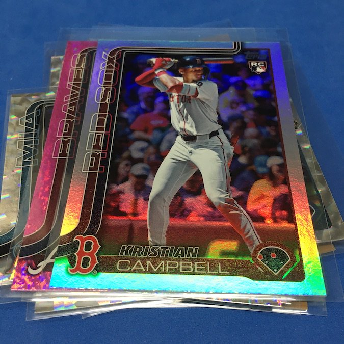 What's Buzz-worthy: My last one of these over-delivered with an odds-defying pull -- a parallel auto that was one in 14,388 packs -- but this one? Well, it was a bit different. This one was clearly a mis-packed box with three Gold parallels -- one in 27 packs (three boxes) to land just one -- and then a Gold Mirror (one in 737 packs) and the Pink Griffey is also a rarer find (one in 723 packs). (To make it more obvious, this one had a lot of duplicated base as well as triples -- not the norm.) Atop that, there was another find that was supposed to be one in about three of these boxes. In terms of specifics, I once again landed Mayer on the jumbo -- same as last time -- and my companion was Kurtz but with a bad corner. Thanks to the botch, though, this one is still an A+ box. Beyond that, it was a bit of a Sox show with Kristian Campbell in there a few times in good spots, which is perhaps a good thing over time. Last time, the ink made it a top mark but this time it did it the more-traditional way -- thanks to the higher-volume of rarer finds. I'll probably open more of these if they present themselves as the variety and volume is here where all those younger stars who might pop up in other places in the box beyond base cards.