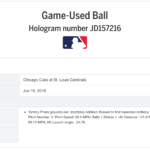 Game-used ball (MLB Authenticated): Chicago Cubs vs. St. Louis Cardinals - June 15, 2018 (yes, last week)