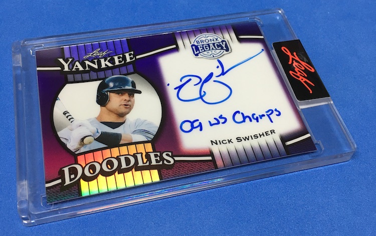 The Card: Nick Swisher 2025 Leaf Bronx Legacy Yankee Doodles Autographs Purple (/8)