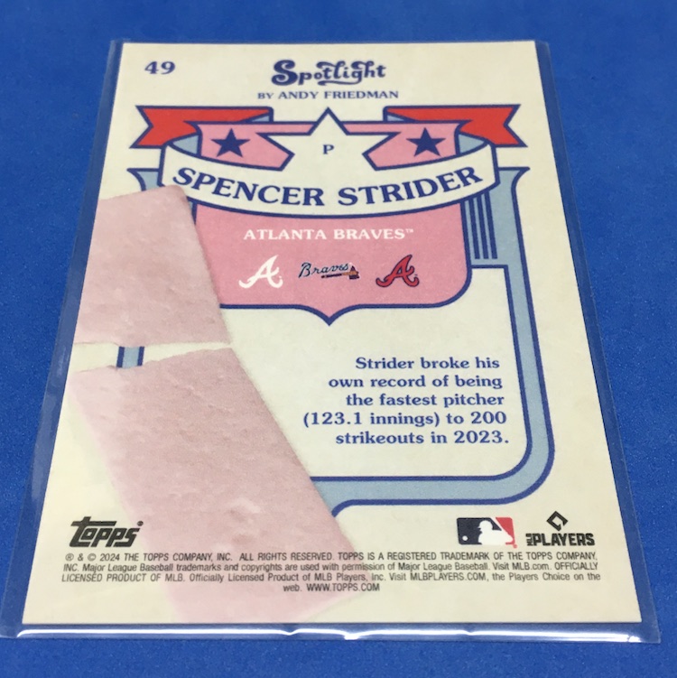 The Card: Spencer Strider 2024 Topps Spotlight By Andy Friedman Gum Back parallel
