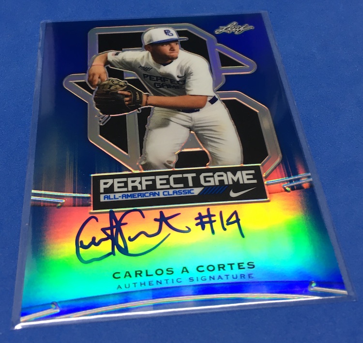 The Card: Carlos A. Cortes 2015 Leaf Metal Draft Perfect Game Blue Prismatic Autographs (/25)
