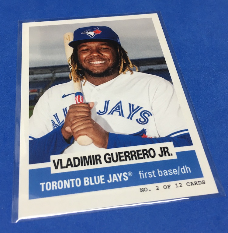 The Card: Vladimir Guerrero Jr. 2021 Topps #TBT 1961 Topps Bazooka Panels (announced /4,710)