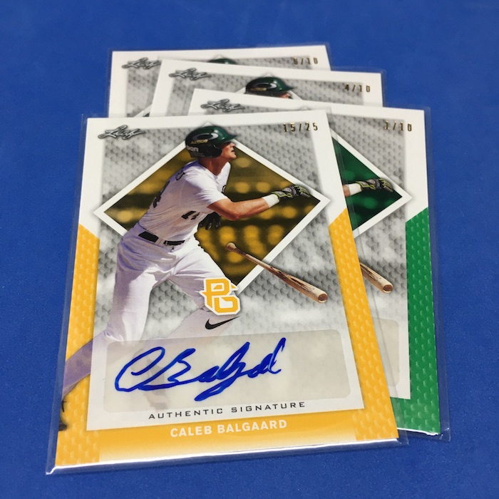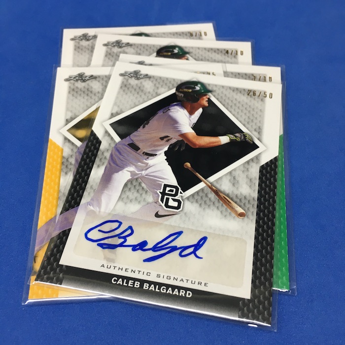 The Cards: Caleb Balgaard (aka WWE's Kale Dixon) 2016 Leaf Perfect Game National Showcase Green (/10), Yellow (/25) & Black (/50) autographs