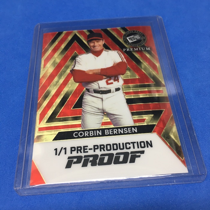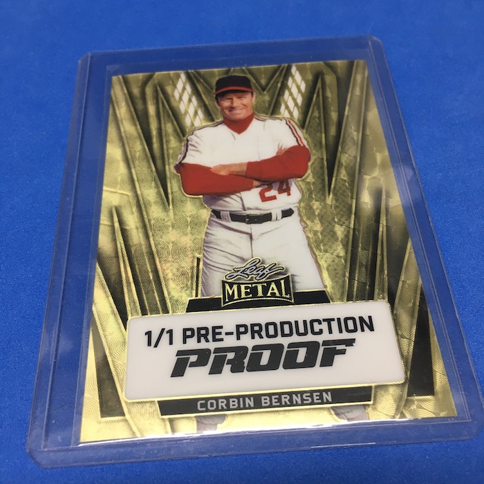 Why it’s Buzz-worthy: This pair of proofs were too cheap for me to give the "olé" treatment considering they use what's basically the "Superfractor" stock that drives so many with deep pockets quite wild. The photo is the same but the sets are different (leading to confusion sometimes with these proofs) and that is probably why the seller of the proofs didn't even try to discern the set names. (Heck, I might not even be 100-percent correct, myself.) But they were the perfect additions. Bernsen has a lot of cards in the multi-sport and non-sport realms and a lot of them now have logo-free Indians uni pics. I can't collect them all but I think these two were good for me ... I might track down some ink to go with them at some point.