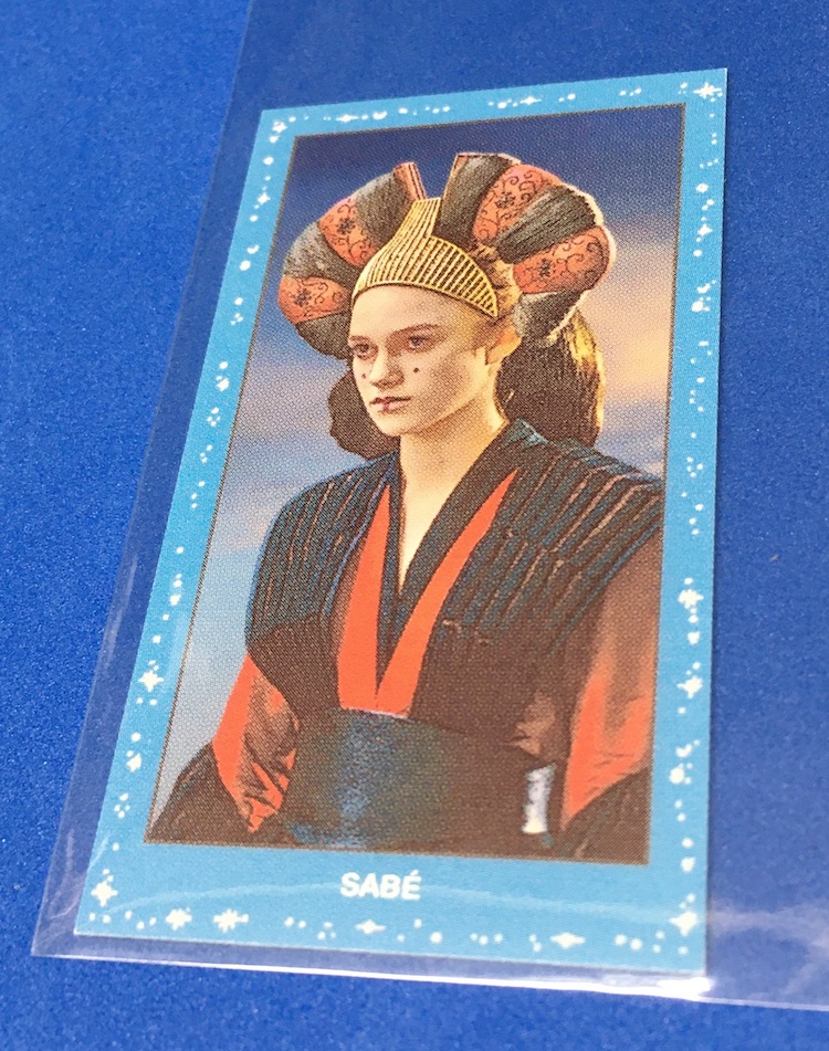 The Card: Sabé (aka Keira Knightley) 2022 Topps 206 Star Wars Wave 4 Blue Starfield parallel