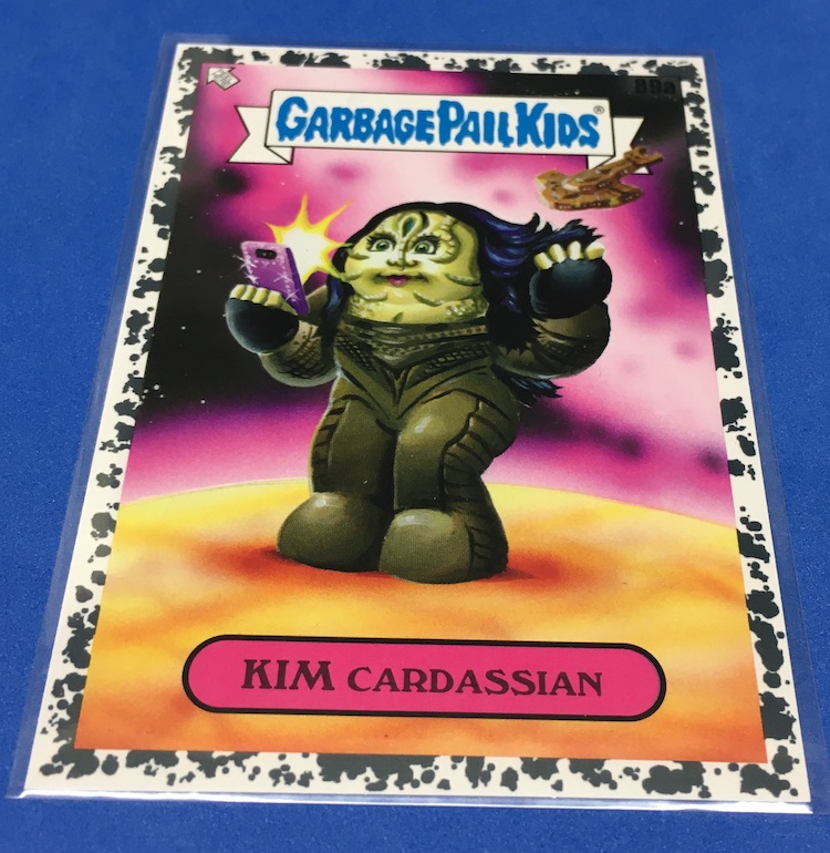 The Card: Kim Cardassian (aka Kim Kardashian) 2023 Topps Garbage Pail Kids Intergoolactic Mayhem Moonrock Gray parallel (/199)