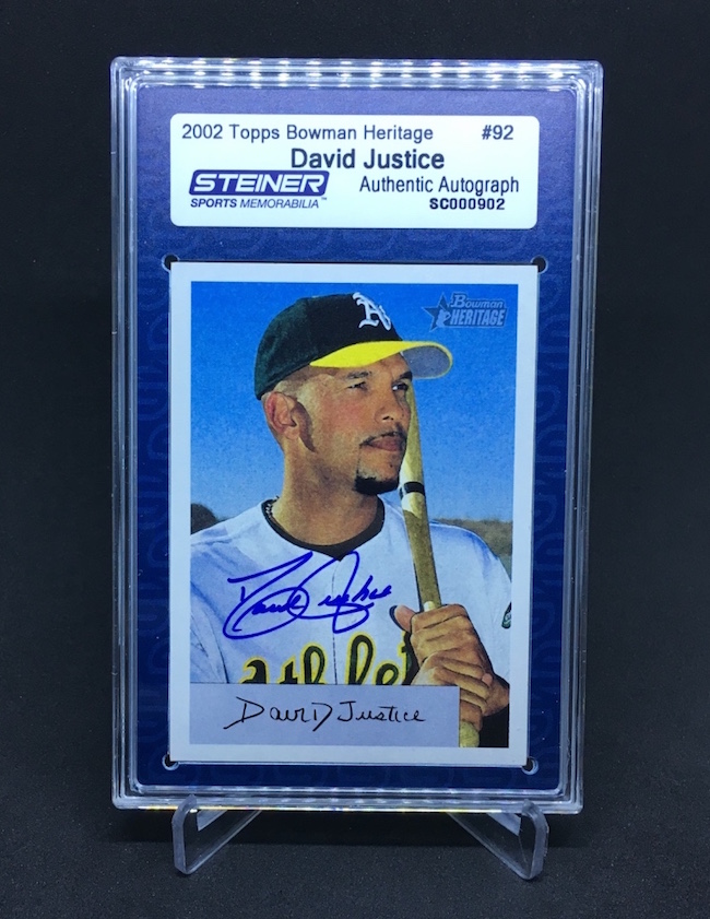 The Card: David Justice 2002 Bowman Heritage autograph (Steiner Sports authenticated/slabbed)