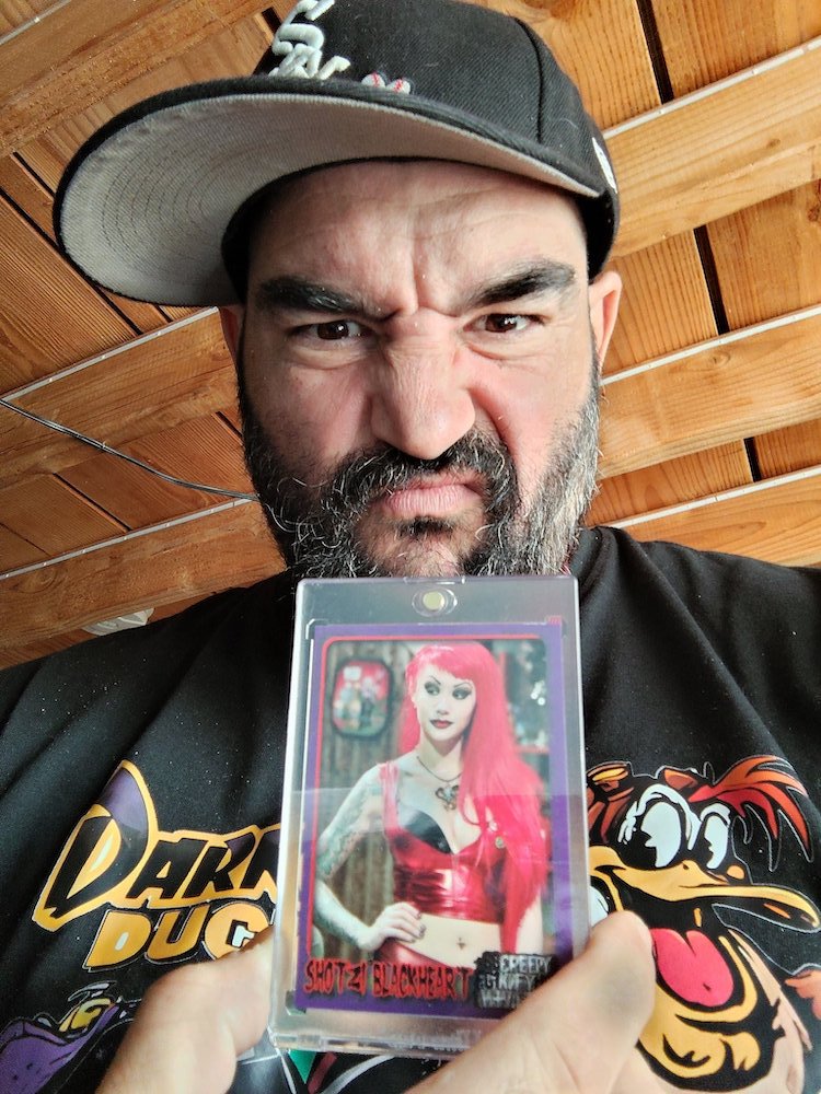 Before this, I had been asked by several collectors whether I'd let any of my amassed cards go -- I declined all requests (I'm rarely a trader or seller) but told them I'd give them first notice if I ever changed my mind. I even was contacted by one of Blackheart's wrestling school trainers from the very start of her career, when she was briefly known with another name. But, I even turned down the inquiry from Rick Scott Stoner who helped bring Blackheart to the ring as part of the Stoner Brothers back in Hoodslam all those years ago.