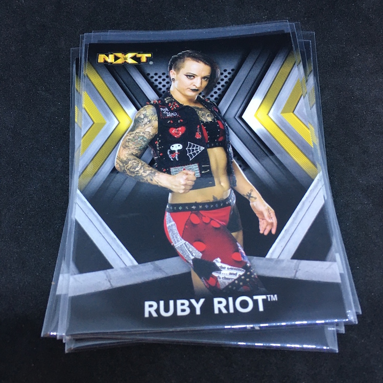 Notables on base cards – Shinsuke Nakamura, Mandy Rose, Peyton Royce, Liv Morgan, Finn Balor, Ember Moon, Cathy Kelley, Ruby Riott, Aliyah, Elias, Baron Corbin, Samoa Joe, Paul Elluring, Johnny Gargano, William Regal, Andrade