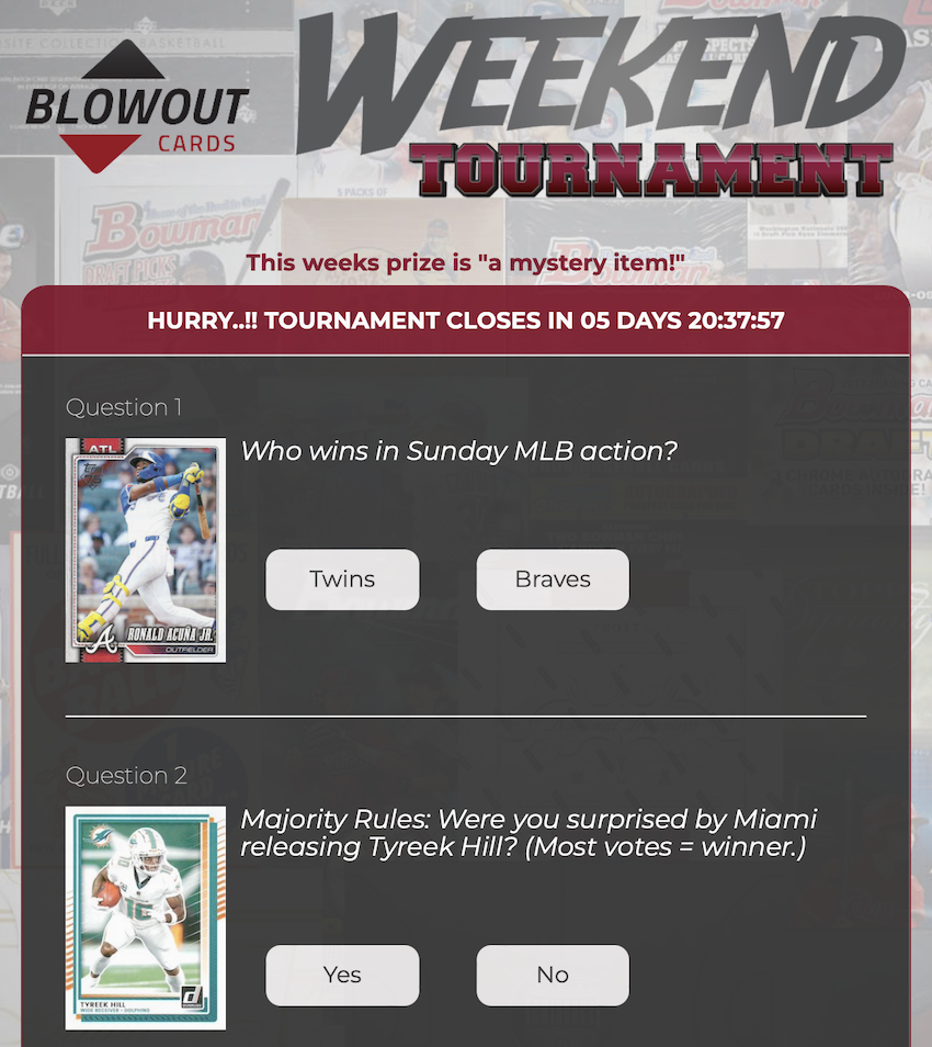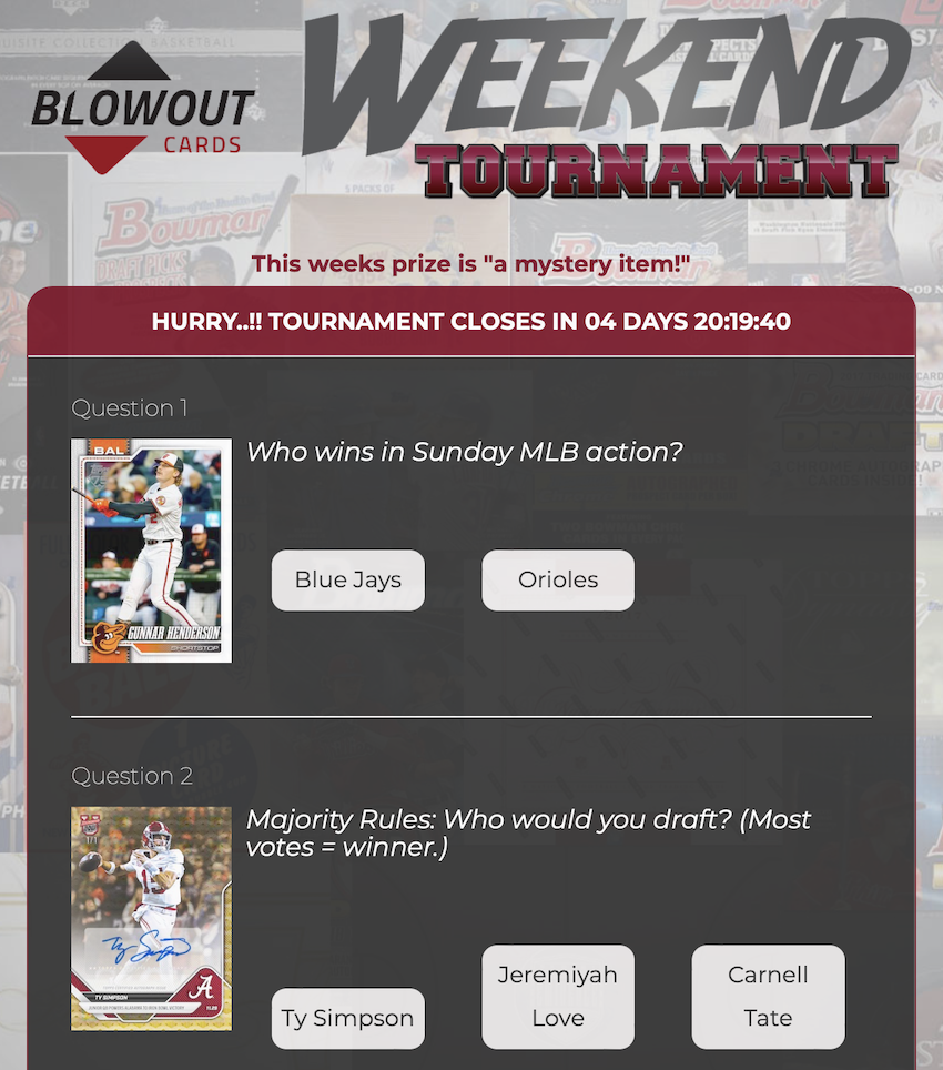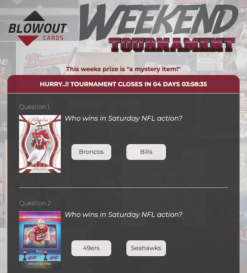 Did you get in on last week's action? Check the leaderboard and contact fish@blowoutcards.com to claim your prize if you're the winner.