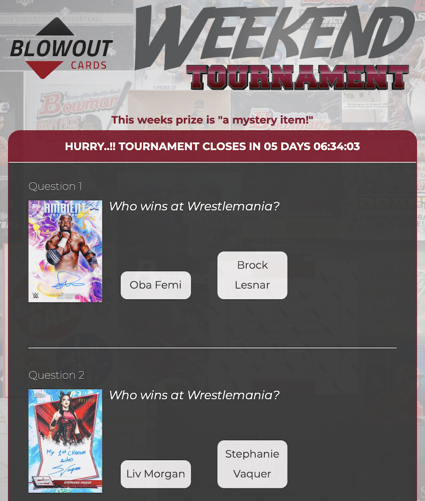 Did you get in on last week's action? Check the leaderboard and contact fish@blowoutcards.com to claim your prize if you're the winner.