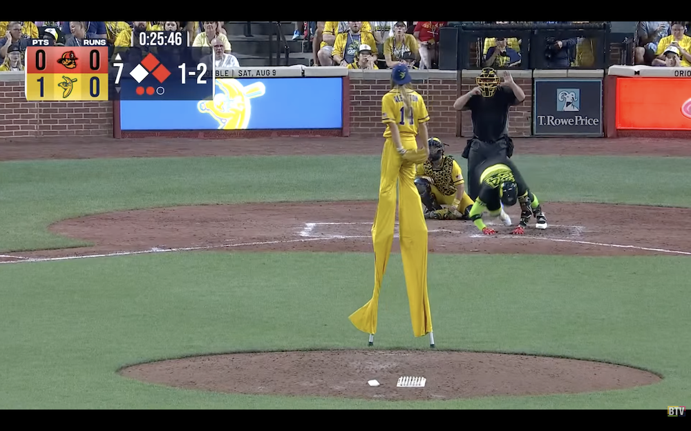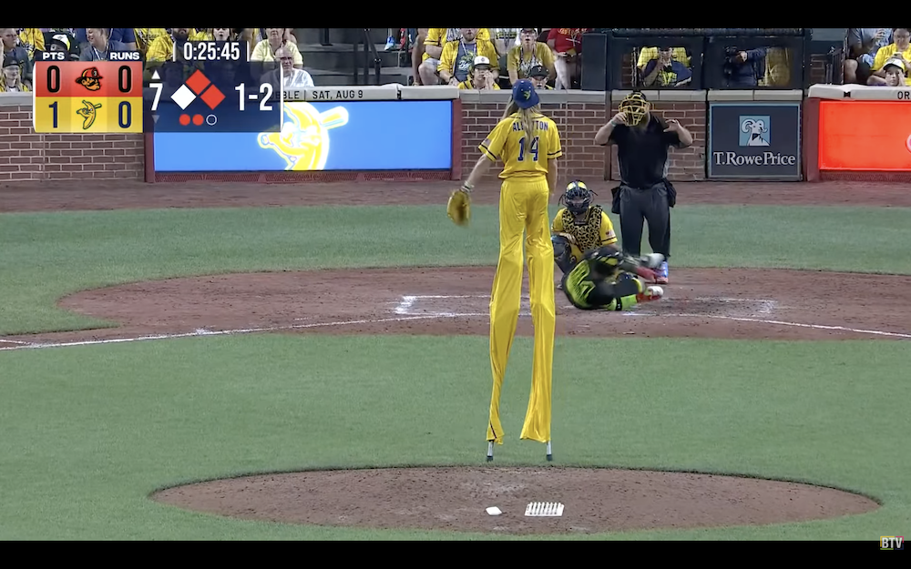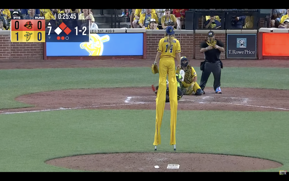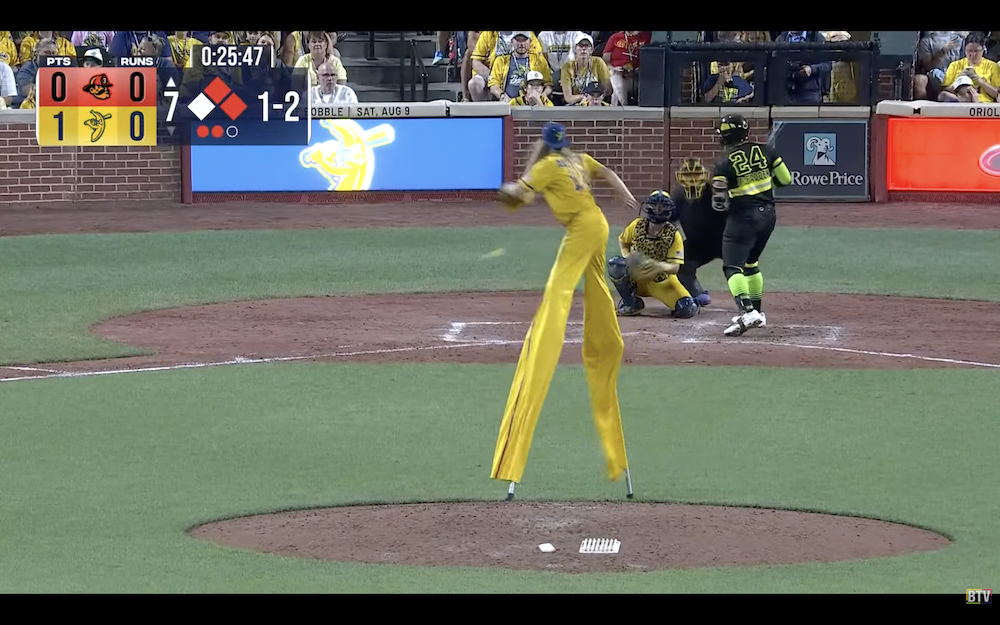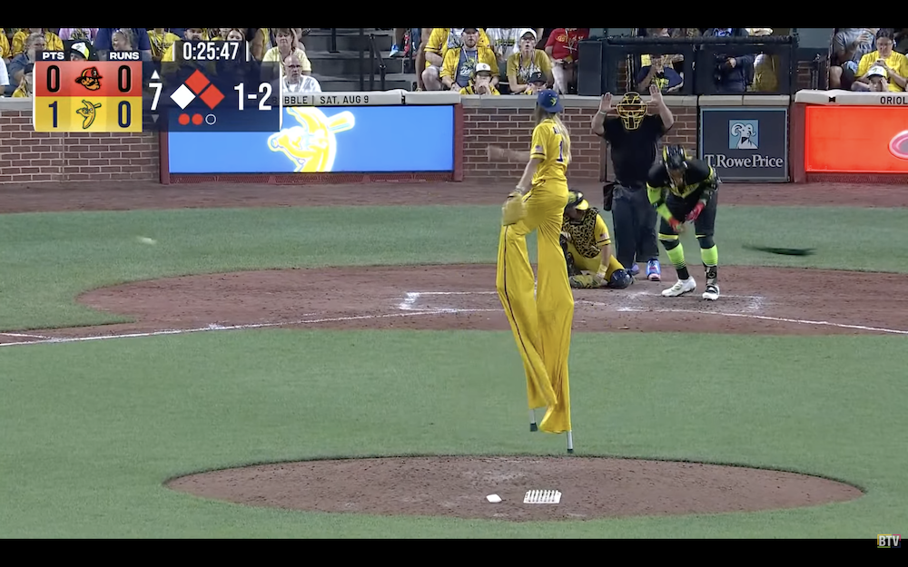 The results: A single pitch resulting in a beanball from the world's tallest pitcher, who checks in at 10-foot-9 when on the field.